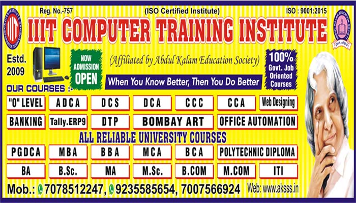 अब्दुल कलाम शिक्षा समिति द्वारा आपके शहर में पहली बार सीसीसी कोर्स फ्री कराया जा रहा है जिसके अंतर्गत सीसीसी परीक्षा पास करने पर ५०० रूपए पुरस्कार के रूप में स्कॉलरशिप दी जाएगी